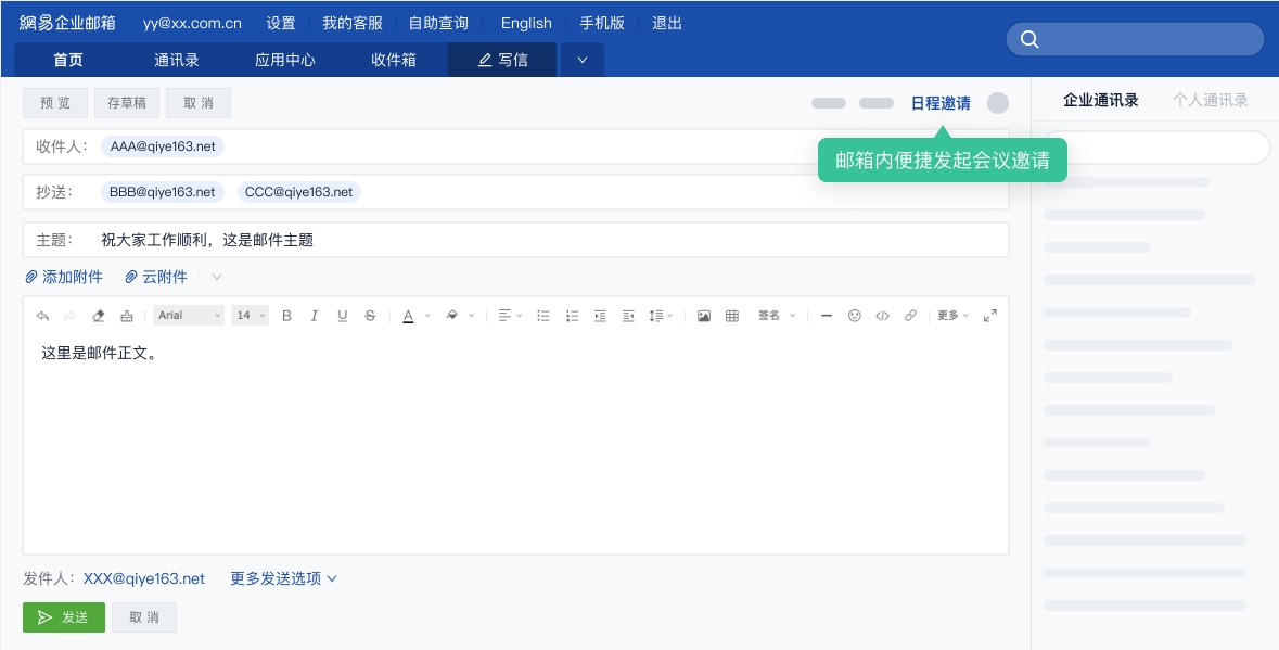 个人邮箱的后缀都是统一的,如@163.com,但网易企业邮箱的邮箱后缀是跟着您注册的域名走的,如果您公司已有域名,您可以用现有域名做邮箱后缀,如果您这边还没域名,我们也可以送您一个