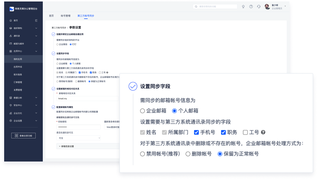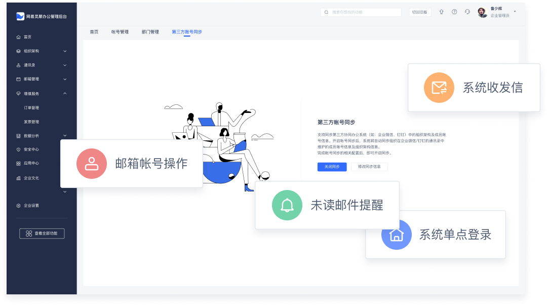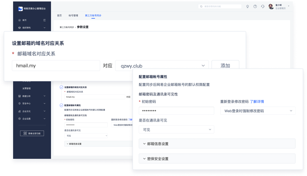 中冶华天将网易企业邮箱与第三方平台对接集成,支持在第三方平台中免密登录到网易企业邮箱系统,为企业提供便捷安全的邮箱使用体验。