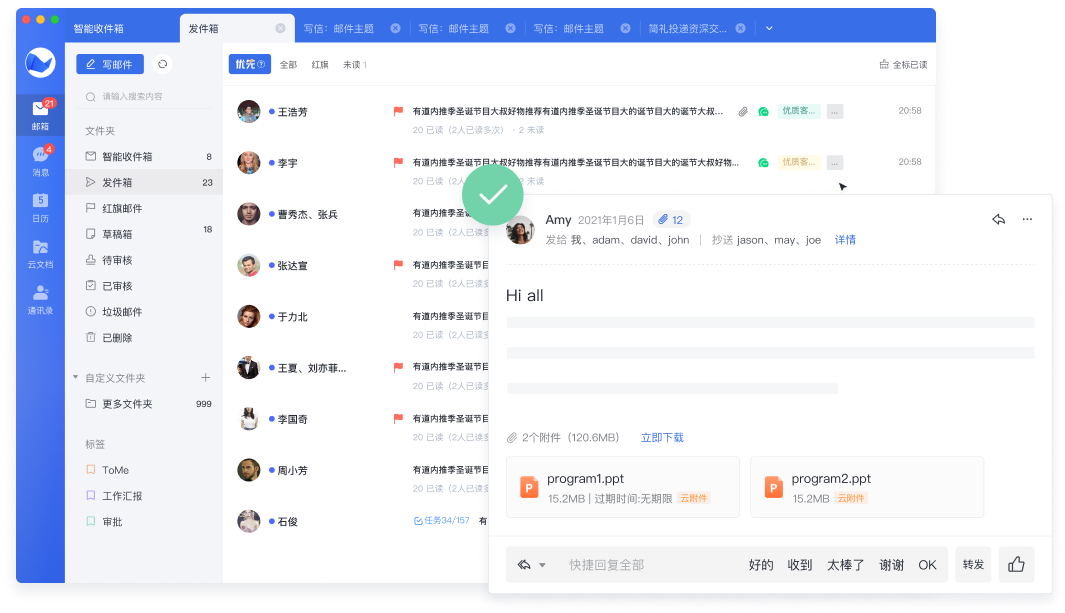 极兔国际各个物流仓均使用网易企业邮箱进行业务往来稳定的海内外收发信能力、便捷的企业邮箱管理功能为极兔速递打造邮件极速收发体验。