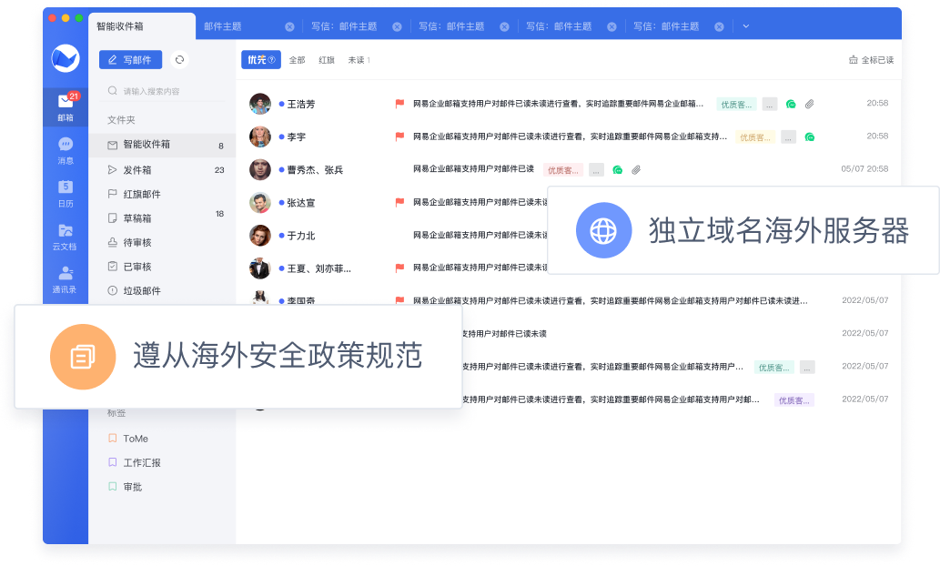华测检测有大量的海外邮件收发需求,网易企业邮箱具有优秀的海外邮件送达能力,海外访问稳定性高,助力华测检测企业业务畅达海外。