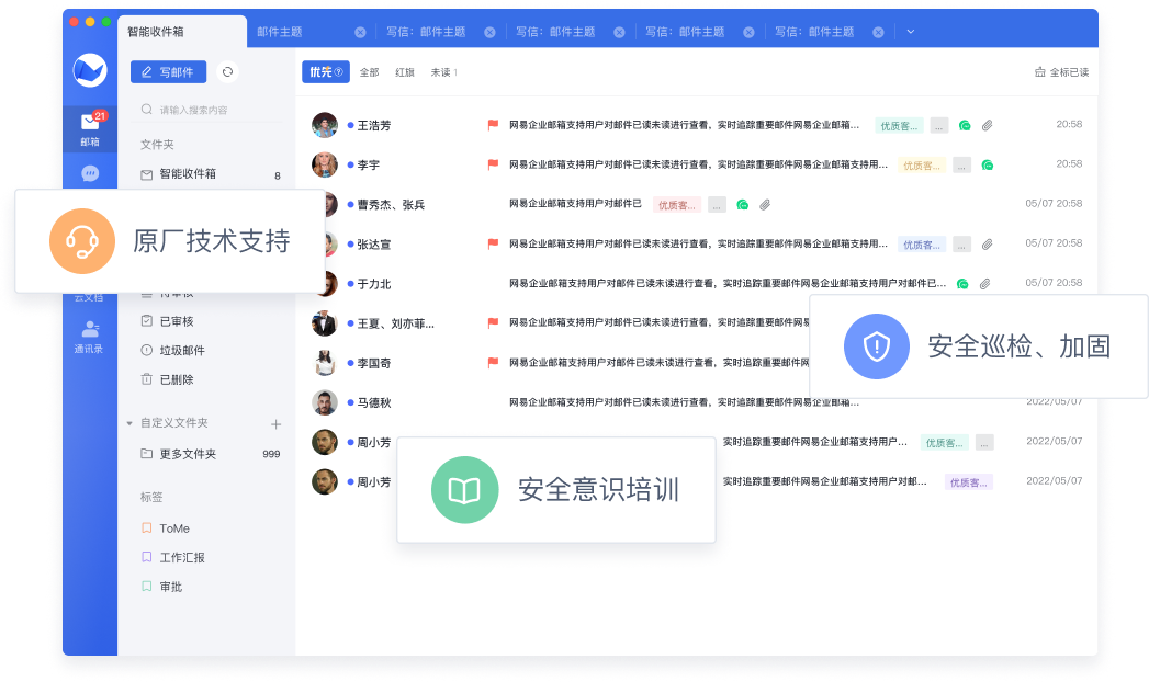 在国家护网行动期间,网易企业邮箱为航天工业提供了多轮安全重保服务、驻场支持,即时解答问题,保障了活动的安全进行。